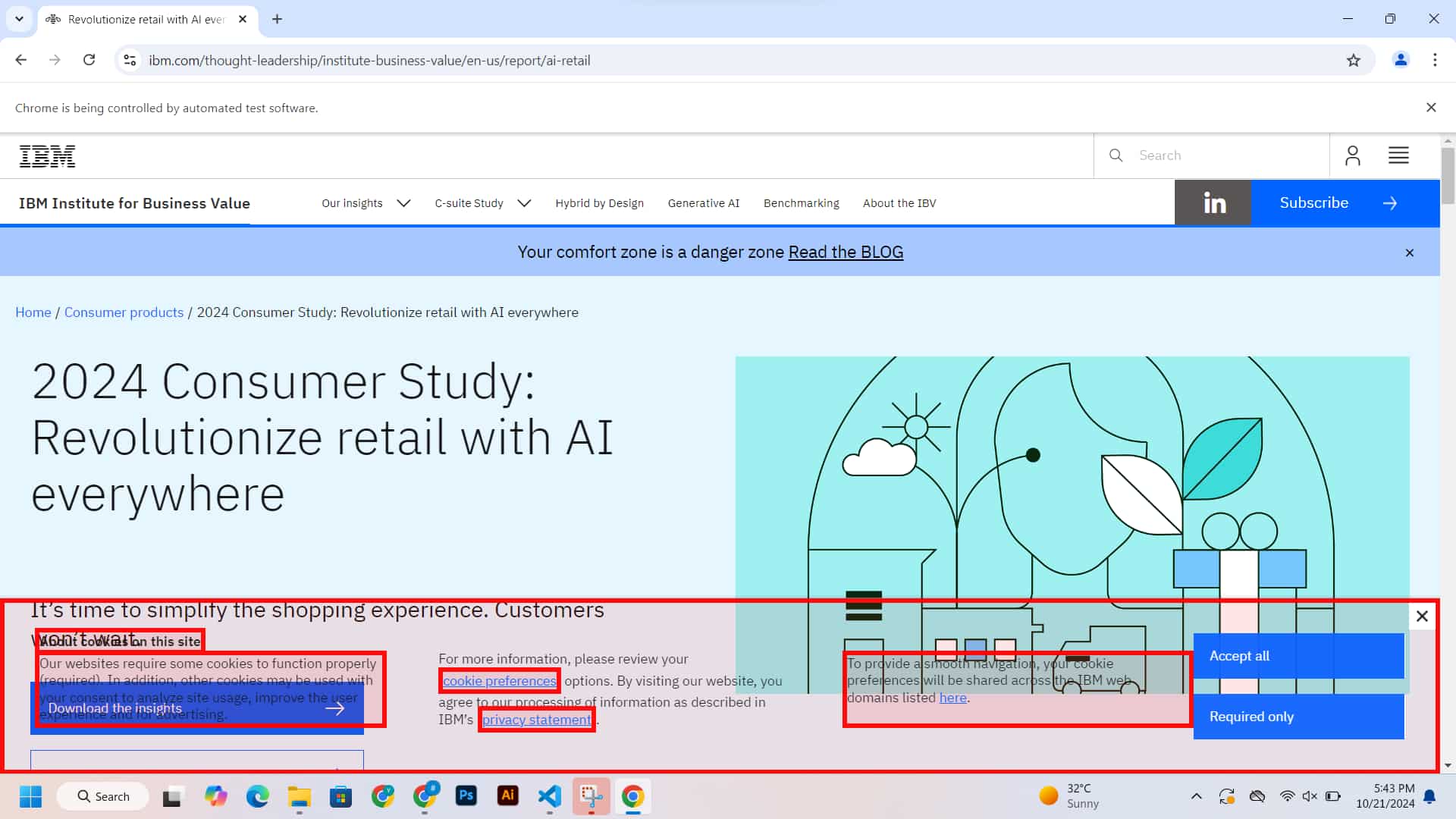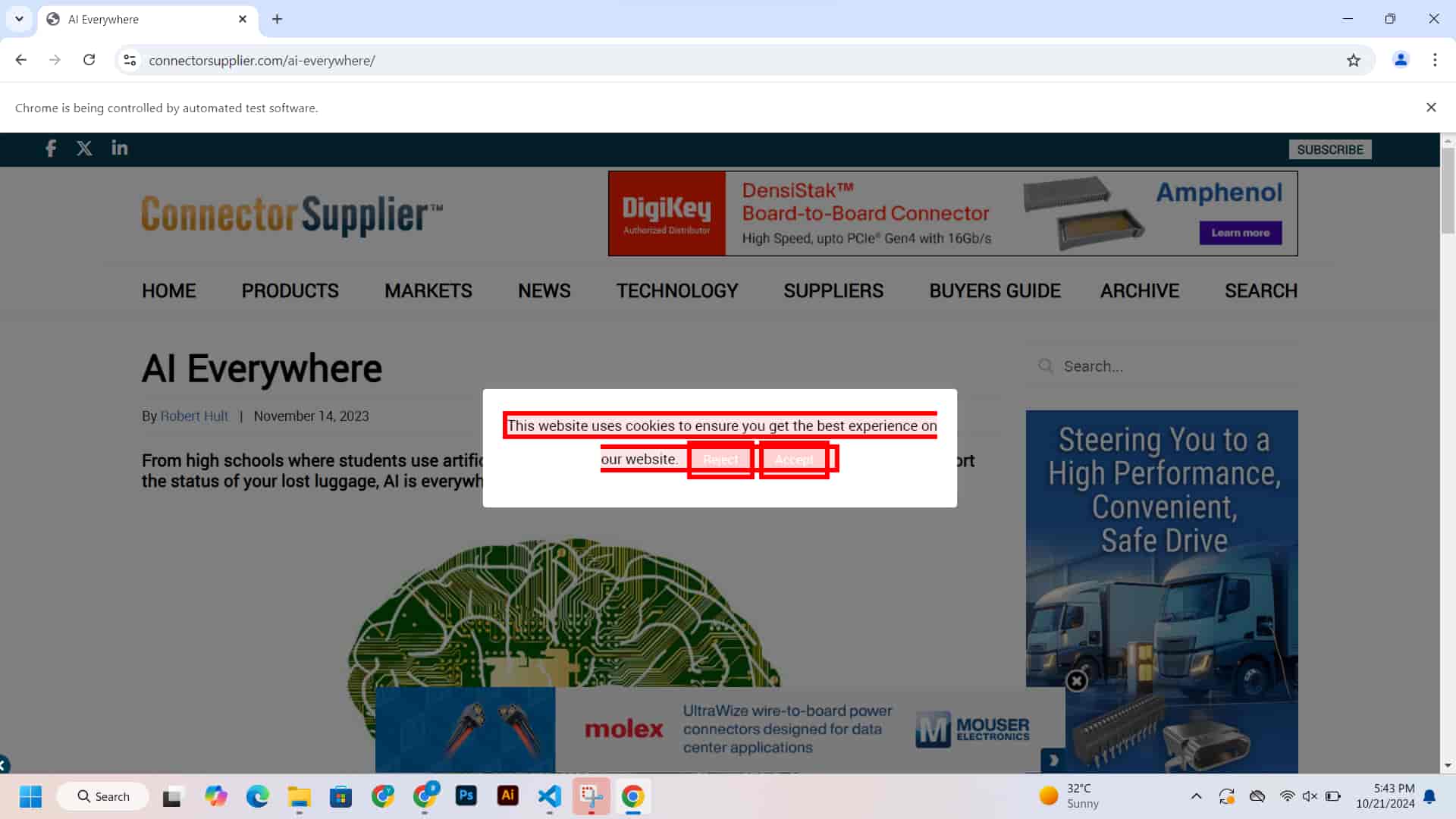As Selenium is known for scraping and automating task, I used it's function to automate the process of detecting cookie collection prompts everytime I surf the net. The code works by detecting keywords of "cookie" and "policy", and upon detecting the words, it draws a bounding box around the text.